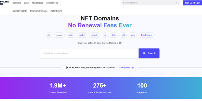 Unstoppable Domains (UD) est une entreprise fournisseur de noms de domaine blockchain reconnue. Cette société basée à San Francisco cherche à conduire le monde vers un réseau décentralisé. Il permet à tout le monde d’acheter un nom de domaine décentralisé qui est frappé comme un NFT sur la blockchain Ethereum.